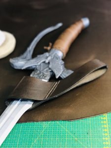 Bijl en zwaardhouder; Deze leren heup houder is met de hand gemaakt en kan in verschillende kleuren worden gemaakt. Ze zijn ideaal voor lange zwaarden, maar kunnen ook worden gebruikt voor bijlen.