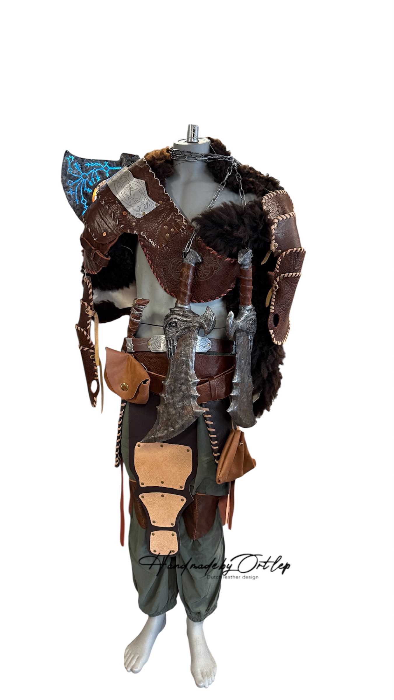 Stap in de wereld van epische strijd en goddelijke macht met ons handgemaakte lederen Kratos-kostuum, geïnspireerd door de legendarische God of War. Bij HandmadebyOrtlep hebben we de finesse van vakmanschap samengebracht met de ruige allure van Kratos, om jou het ultieme cosplay-ervaring te bieden. Elk detail, van de stoere lederen textuur tot de imposante uitstraling, is met zorg vervaardigd om jouw transformatie tot deze mythische figuur tot leven te brengen.