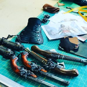 Het ontwerp komt van een echte politie pistoolhouder en draagt zeer comfortabel. Ze zijn ook te verkrijgen voor donderbussen of piraten pistolen.